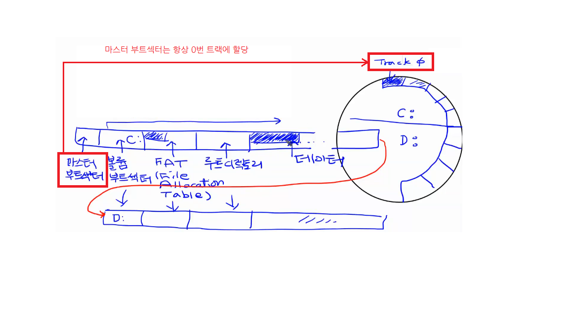 - 마스터 부트섹터는 항상 트랙 0번(가장 첫 번째)에 할당.